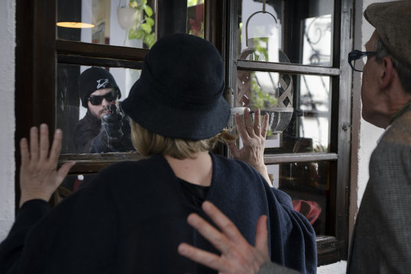 Die beiden Impro-Künstler binden die Anwesenden immer wieder spontan in den Comedy-Krimi ein, sie bedienen sich vielfältiger Ausdrucksmittel, spielen gleich mehrere Charaktere und haben ein